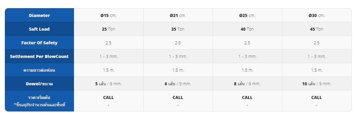 ตารางเปรียบคุณสมบัติของเสาเข็ม